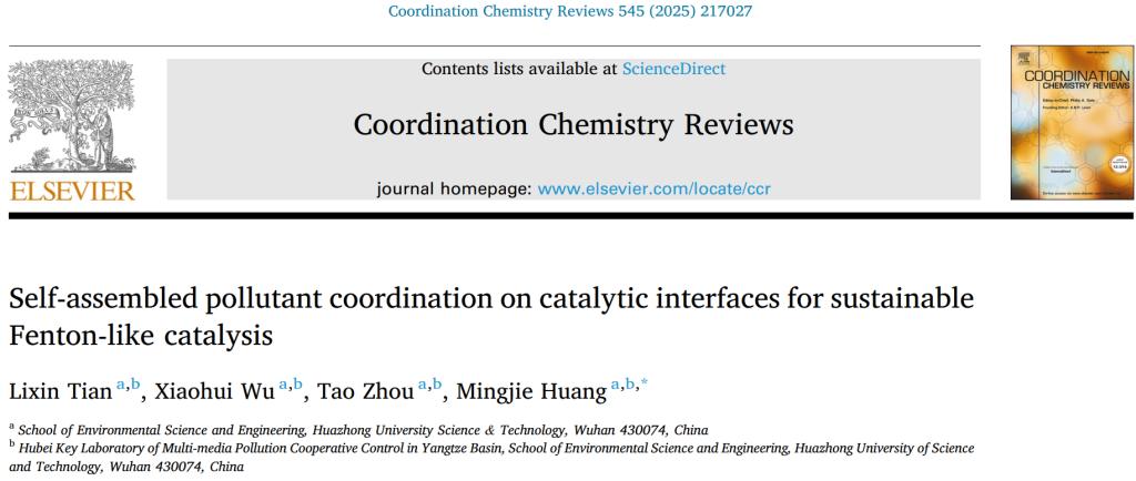 近日,公司周涛/黄明杰团队在《Coordination Chemistry Reviews》上发表了题为“Self-assembled pollutant coordination on catalytic interfaces for sustainable Fenton-like catalysis”的综述论文。该综述系统性总结了类芬顿催化体系中催化剂-污染物相互作用类型及其内在机制,为构建可持续类芬顿体系提供了理论基础。