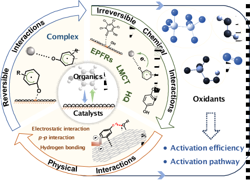 在传统类芬顿体系中,氧化剂的活化效率与路径主要受催化剂活性位点性质调控。因此,催化剂结构的精细设计已成为提升类芬顿催化效率的关键研究方向。然而,该领域仍面临催化剂制备成本高昂及稳定性不足等严峻挑战,亟需对现有催化体系进行创新。该综述深入解析了催化剂-污染物相互作用如何影响活性位点性质,进而提升氧化剂利用效率与整体催化性能的特征机制。具体而言,依据污染物分子与催化剂活性位点间的轨道杂化程度与电子转移特征,这类相互作用可分为不可逆化学相互作用、可逆化学相互作用及物理相互作用。其中,不可逆化学相互作用可降低金属中心的氧化还原电位并加速活性物种生成;亦可在催化剂表面形成环境持久性自由基(EPFRs),调控氧化剂活化路径。可逆化学相互作用则通过与金属物种形成络合物,促进高效活性物种选择性生成。物理相互作用(如静电相互作用、氢键、π-π堆积等)可促进反应物富集或引发竞争吸附,对催化过程产生双重影响。此外,该综述进一步归纳了触发各类相互作用的催化剂与污染物结构特征,为在类芬顿催化反应中利用催化剂-污染物相互作用提供了坚实的理论基础,有助于推动类芬顿技术在实际水处理应用中的可持续发展。