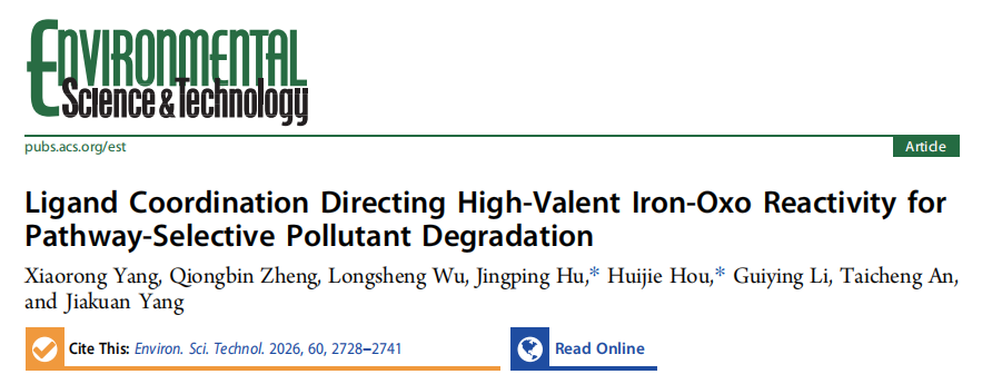 Ligand Coordination Directing High-Valent Iron-Oxo Reactivity for Pathway-Selective Pollutant Degradation, Environ. Sci. Technol. 2026, 60, 2728-2741,