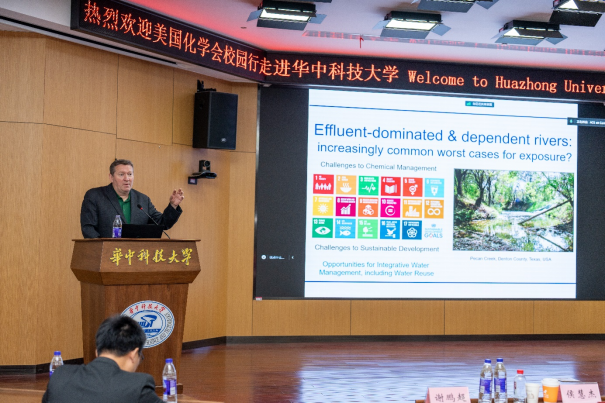 Bryan Brooks教授是美国贝勒大学杰出教授,其研究兴趣广泛,在水质保障、环境污染评价及治理、可持续发展以及城市系统工程等方面均做出了杰出成果。作为EST Letters创刊主编,Bryan Brooks教授带来了“Integrating One Health to Examine Urbanizing Aquatic Systems”精彩学术报告,其在报告中指出目前水污染严重,人类正面临着巨大的环境挑战,提出了城市化水生系统修复、水资源综合管理的重要性,现场呼吁各位老师和同学担起环境保护的责任。