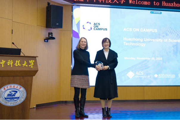 作为本次活动的承办方,ACS出版社对公司组织承办本次活动表达感谢,并邀请ACS责任编辑Margaret Millss博士(主要负责EST)赠送了ACS on Campus活动承办方纪念杯,侯慧杰副经理代表公司接收了纪念杯。