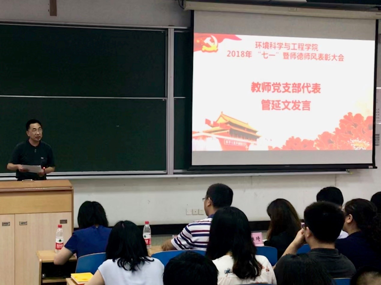 教工建环党支部书记管延文、优秀教师党员侯慧杰、员工党员冷康鑫、优秀教师班主任刘正乾、师德师风先进个人徐新华、濮文虹等6位获奖代表分别作为先进典型发言。