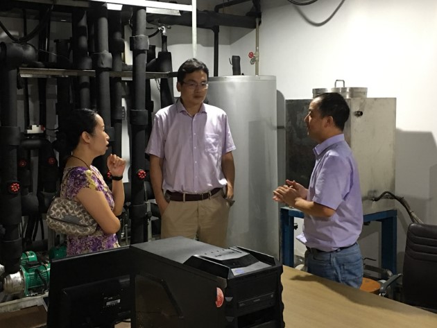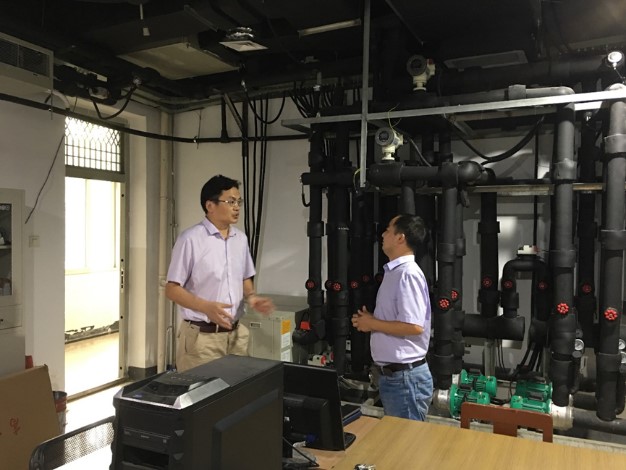 在调研徐新华课题组关于“建筑中央空调系统智能控制研究”的科研成果时,徐新华教授就建筑通风空调一体化智能控制节能技术及其载体建筑通风空调系统人工智能控制管理平台的研发向张副董事长做了详细的汇报。该项成果取得了5个发明专利,目前已在武汉地铁2号线街道口站的升级改造中成功试点。张新亮详细询问了相关节能原理,指出这是一项集传统暖通、物联网及人工智能的集成创新技术,勉励要进一步做深入的研究并推广应用。