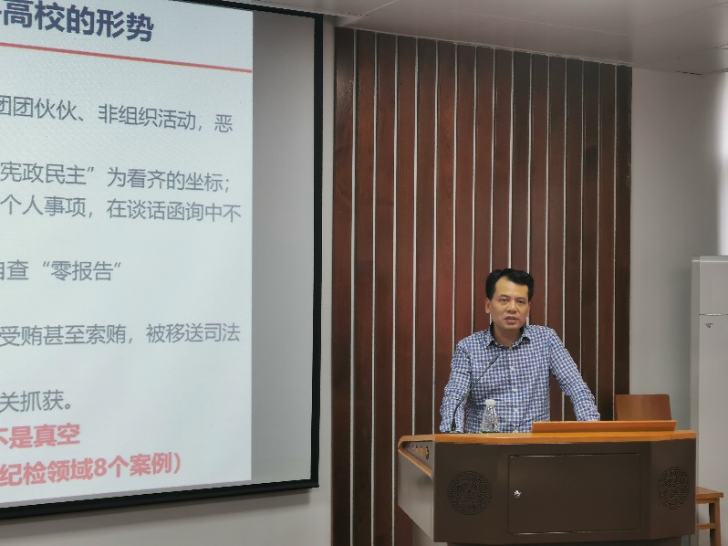 校纪委副书记、监察处处长刘继文同志应公司邀请,作“认清形势,筑牢堤坝,正风肃纪,用良好的政治生态保障公司健康发展”主题报告。报告通过分析全国和高校从严治党的形势,解读监察监督工作新格局,结合案例重点强调高校从严治党、从严治校、从严治教,重在建设风清气正的政治生态、建设青山绿水的办员工态,对公司党委抓好党风廉政建设提供了好的思路和建议,提醒广大教职工,“防微杜渐、正风肃纪”,注重日常思想教育学习和行为规范,党政学群多方共治推进公司健康发展。