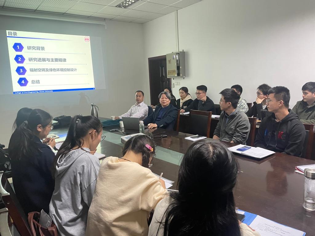 会后,龚光彩教授与参会的青年教师以及研究生进行了广泛与深入学术讨论,针对建筑热湿环境的控制、学术创新、研究工作的开展相关探讨。