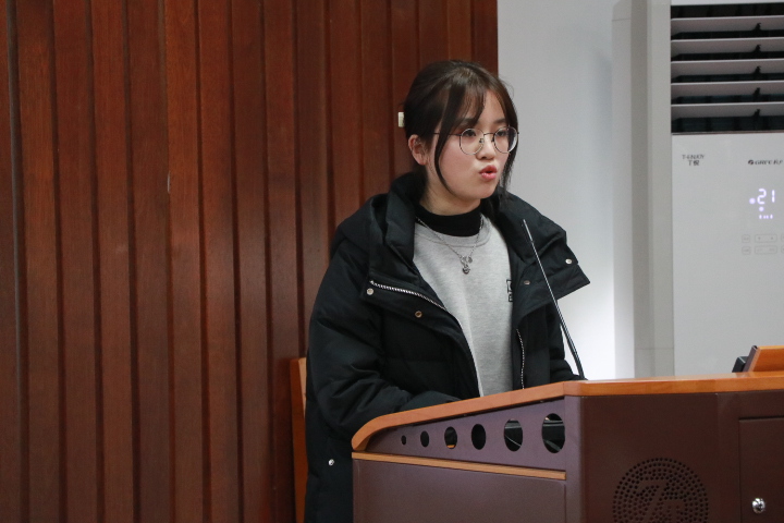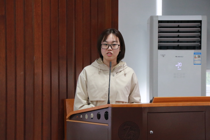 第三组由李瑜玥同学进行答辩,题目是“铬渣和酸性含砷废水的共处理机理研究”。李瑜玥同学分析了传统处理铬渣和酸性含砷废水的处理方式,提出了两种污染物共同处理的想法,达到以废治废的目的,减少了废物处理的成本。