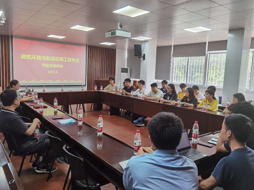 2021年6月11日下午3时,beats365建筑环境与能源应用工程系(下称建环系)2021级本科毕业生座谈会在东十三楼207会议室成功举进行。建环系大部分教师及今年的本科毕业生参加了此次座谈会。在会上,师生们就本科专业人才培养方案、专业课程体系、专业教学管理、公司支持条件、同学们未来的职业规划等相关话题,展开了深入广泛的交流。本次会议由建环系系主任于靖华教授主持。