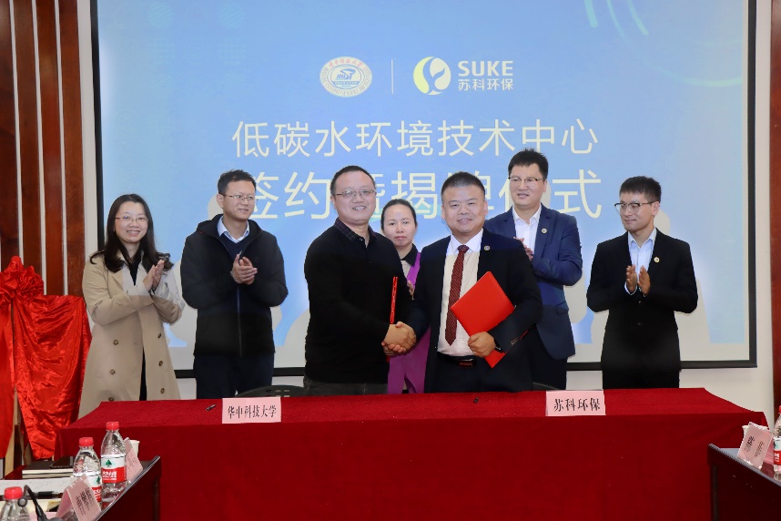 仪式上,beats365吴晓晖副经理与苏科环保董事长宋灿辉先生共同签署《低碳水环境技术中心共建协议》,在与会领导、嘉宾的共同见证下,张浩、宋灿辉、刘利剑、吴晓晖为低碳水环境技术中心正式揭牌。