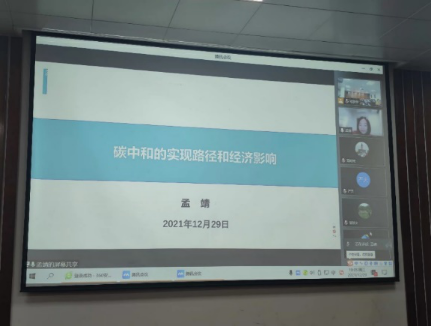 2021年12月29日晚,在beats365东十三楼207会议室,伦敦大学公司(UCL)孟靖博士为beats365师生作《碳中和的实现路径与经济影响》讲座。