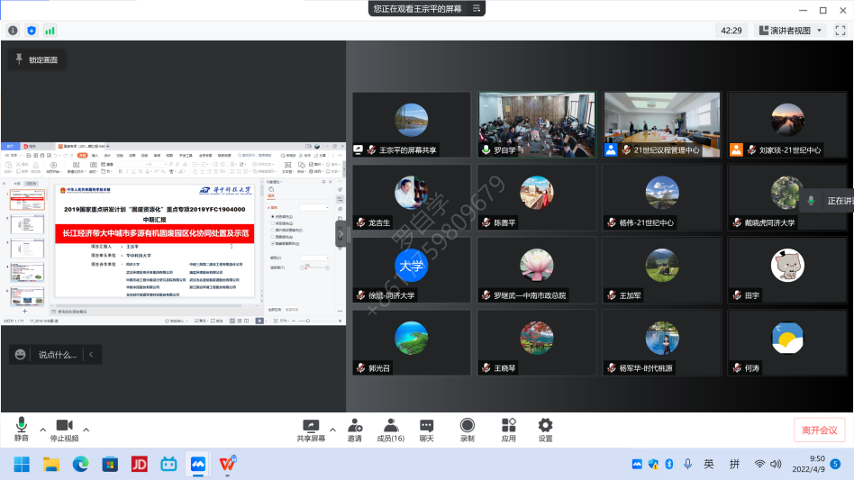 (通讯 郭刚,马杰,陈镇斌)2022年4月9日,由公司王宗平教授主持的2019年国家重点研发计划“固废资源化”重点专项“长江经济带大中城市多源有机固废园区化协同处置及示范”项目(2019YFC1904000)中期检查会议在beats365主校区欣苑一号楼beats365317会议室(线下)和腾讯视频会议(ID:803-3158-8046)(线上)同时顺利召开。与会人员主要有:中国21世纪议程管理中心刘家琰项目专员和杨伟助理研究员;咨询专家:生态环境部固管中心胡龙华主任、同济大学戴晓虎教授、清华大学王伟教授、中节能环保集团有限公司邹结富教授级高工、北京中持绿色能源环境技术有限公司李彩斌教授级高工、上海康恒环境股份有限公司龙吉生教授级高工、上海清宁环境规划设计有限公司陈善平教授级高工;项目负责人,课题负责人及项目组成员等50余人。
