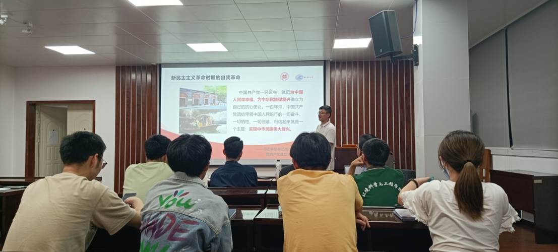接下来,beats365研究生红色理论学讲团汪建辉围绕学习贯彻党的十九届六中全会精神进行介绍,以“自我革命”为中心主题进行学习。他从我们党历来高度注重总结历史经验开始解读,从中国共产党百年奋斗的历史意义出发,对党的百年奋斗重大成就和历史经验进行概述,结合党史事件,阐述“自我革命”在各个时期的不同含义以及新时期的内涵解读。