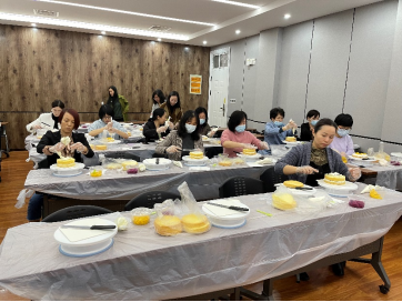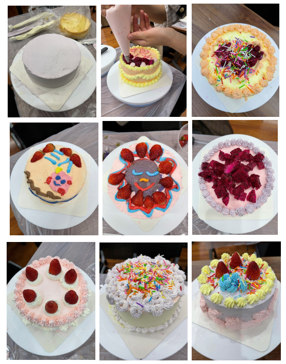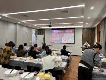 蛋糕烘焙师提前给大家准备了蛋糕胚底、奶油和水果,在现场讲解了奶油蛋糕的制作步骤,随后老师们在蛋糕烘焙师的带领下开始制作夹心蛋糕和抹面蛋糕。抹面蛋糕是最考验耐心的一个环节,老师给大家演示的非常细致。抹面蛋糕完成后,老师们开始各显神通,创意制作了各种各样不同花型的DIY蛋糕。