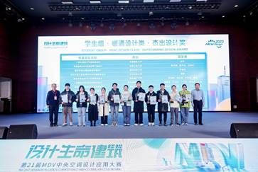 大会同期举办美的“设计生命建筑”第二十一届MDV中央空调设计应用大赛颁奖典礼。建环系杨星语(研究生)、余焜(本科生)的作品《融合IOT的综合大楼空调系统数字孪生及系统状态分析技术》获得该大赛员工组控制达人奖,杨星语同学代表领奖,指导老师是徐新华老师。建环系黄畅(研究生)的作品《武汉市某五星级酒店中央空调系统设计》获得设计达人奖,黄畅同学上台领奖,指导老师是王飞飞老师。杨星语同学的作品《上海某综合大楼空调系统BIM设计》还获得员工组设计优秀奖。徐新华老师与王飞飞老师获得杰出指导奖。