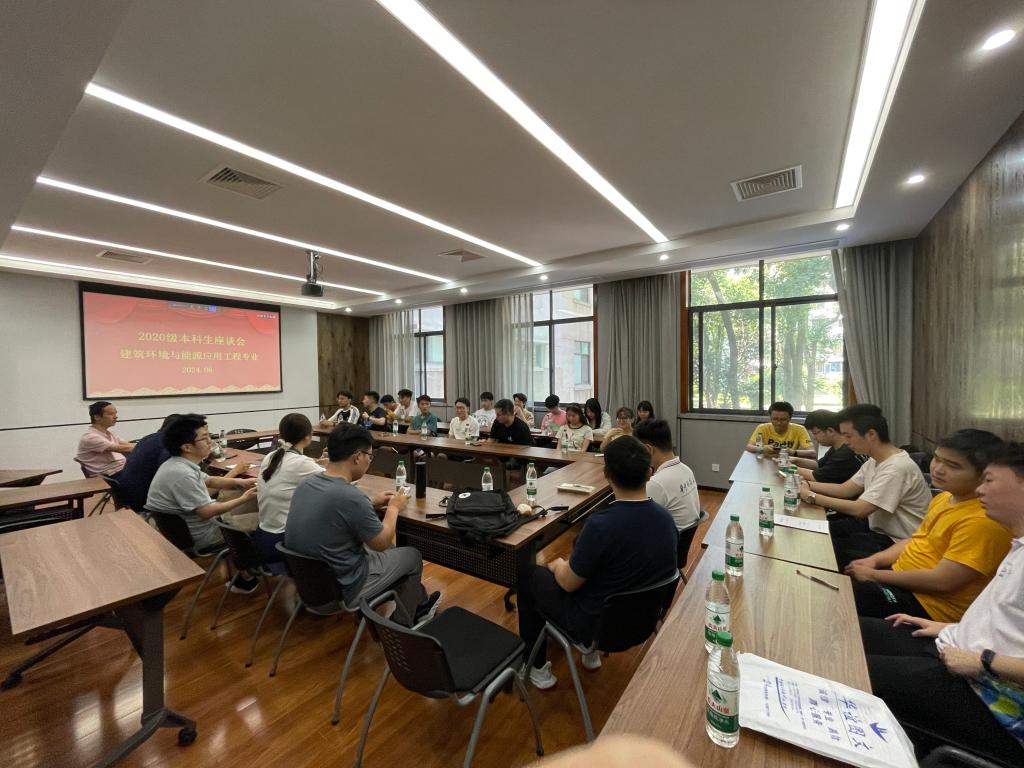 2024年6月13日星期四下午,在欣苑1栋218会议室,建筑环境与能源应用工程系的全体教师、辅导员杨凯与2024届毕业班的同学欢聚一堂,共话本科教育、专业发展、个人职业发展等问题展开全方面深入探讨。