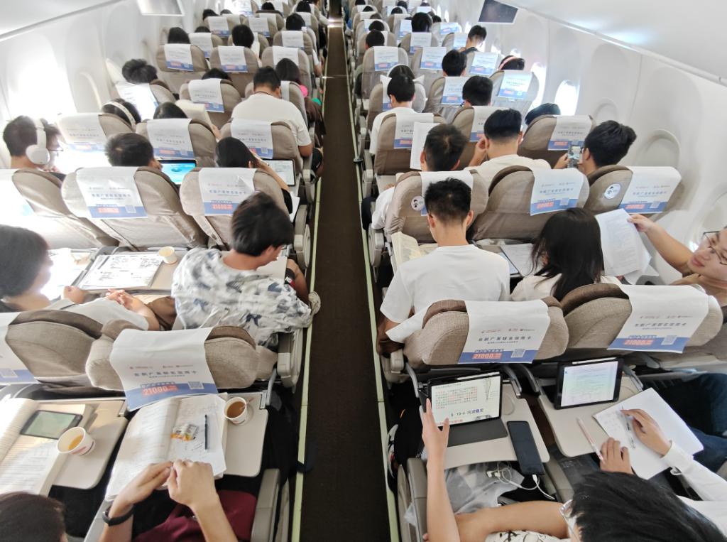在返程的飞机上,同学们毫无倦意,仍然不忘学习,将实习成果与专业所学进行充分的结合,以致飞机乘务员看到了这样的场景,还和同学们惊奇的进行交流,公司同学也非常热情地对乘务员进行了生态环境保护的科普和实习成果的分享。