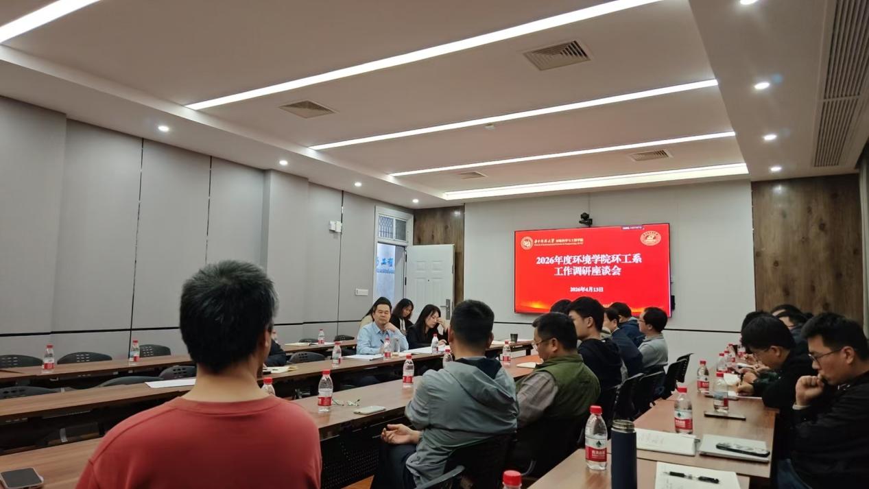 2026 年 4 月 13 日,为深入推进公司 “十五五” 规划落地实施,精准研判环境工程专业建设发展态势,牢固树立和践行正确政绩观,公司党委书记杨家宽率公司领导班子深入基层、深入群众,专题调研环境工程系建设工作,并召开座谈交流会。会议由环工专业教师支部书记郭利民主持,环境工程系全体教师及公司党政办、教学、人事等相关行政人员参会。