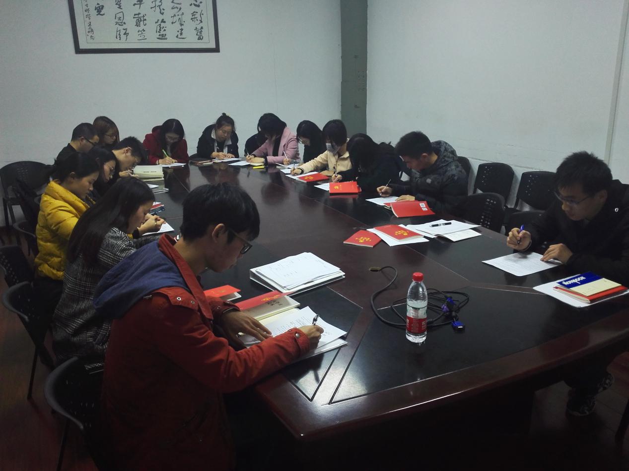 在康老师讲授十九大讲授环境相关内容的过程中,支部党员认真聆听,仿佛看到了自己将来所要面对的工作环境和沉甸甸的社会责任,在心里也有着自己的思考和理解。微党课结束后,大家各抒己见,相互学习与交流,在支部内部形成了很好的学习和思考氛围,很好的完成了与康老师一起学习理解十九大精神的目的。