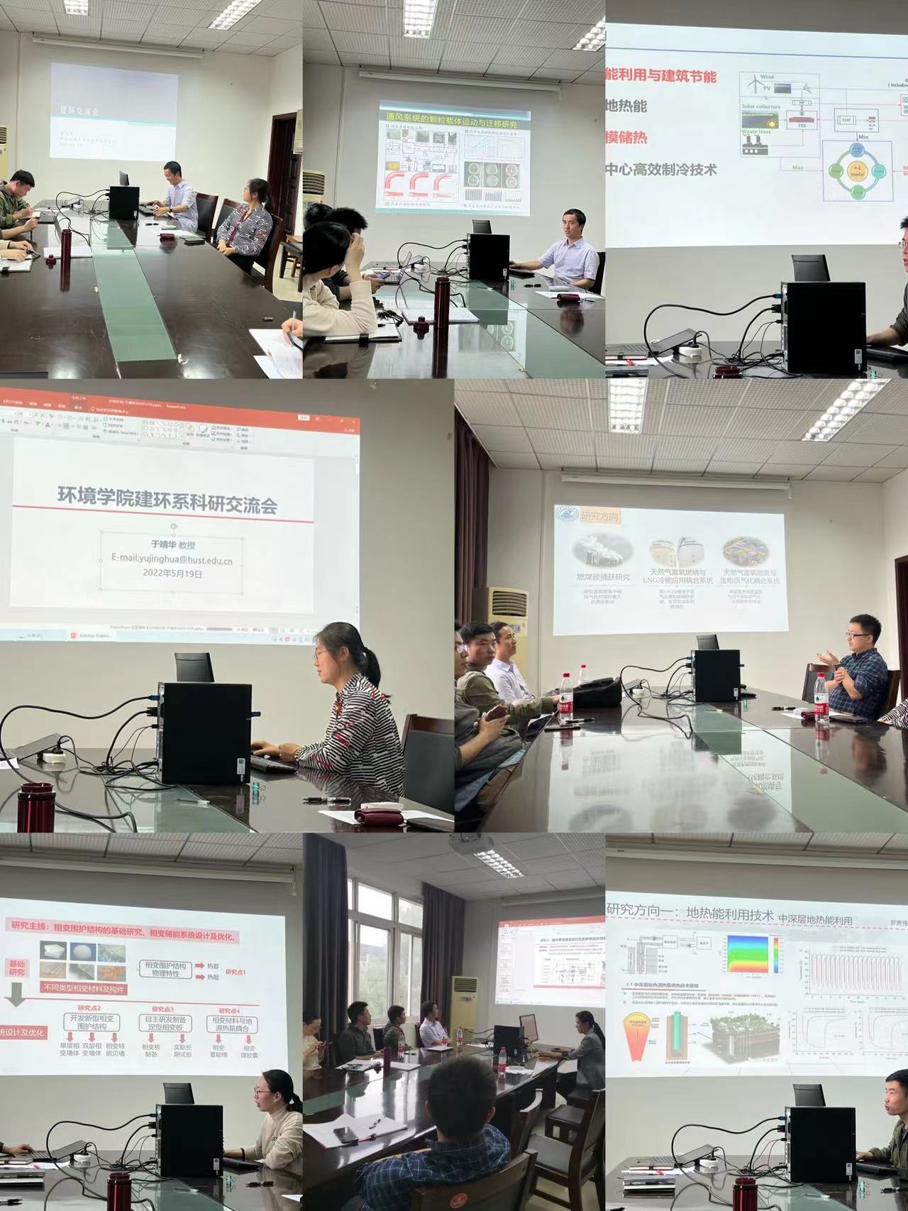 首先,各个教师介绍了各自的研究方向,王飞飞同志介绍了自己在室内空气品质方向的研究,如典型隔离病房中病菌的扩散与控制机理,分享了如何使用公司和公司实验资源的经验。罗勇强同志就中深层地热利用、建筑中太阳能利用、数据中心节能利用分享经验。田志勇同志介绍了关于太阳能利用、大规模储热、能源与气候变化方向、数据中心高效制冷的研究。朱娜同志介绍了相变围护结构与储能结构、相变材料与地源系统结合。于靖华同志介绍了新型围护结构、高大空间热环境与节能技术的研究;刚文杰同志就综合能源系统、数据挖掘技术与智能建筑等展开介绍;蔡磊同志针对燃煤碳捕捉、天然气富氧燃烧与LNG冷能应用、生物质气化等展开介绍。