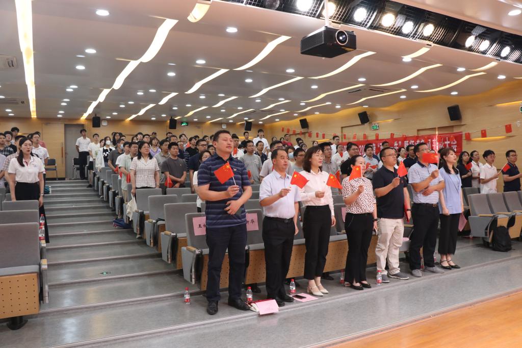 大会在雄壮激昂的《义勇军进行曲》中拉开帷幕,全场师生高唱中华人民共和国国歌,致敬中国共产党百年荣光。