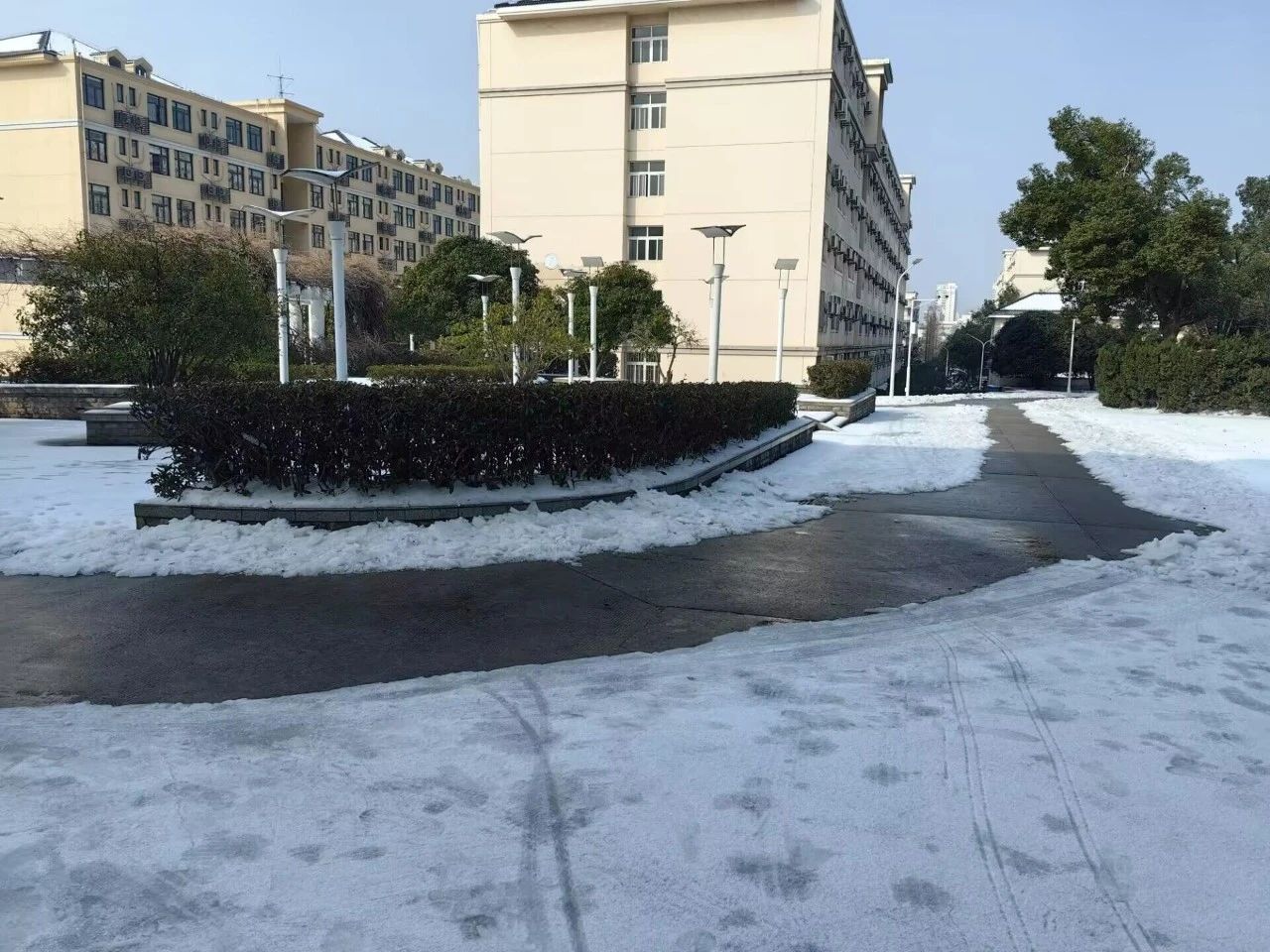 从上午八点半到十点半,两个小时的不懈努力,在​beats365师生的通力合作下,韵苑18栋附近的道路焕然一新。令人头疼的积雪消失不见,取而代之的是平整不打滑的路面,大大提高了同学们出行的安全性。