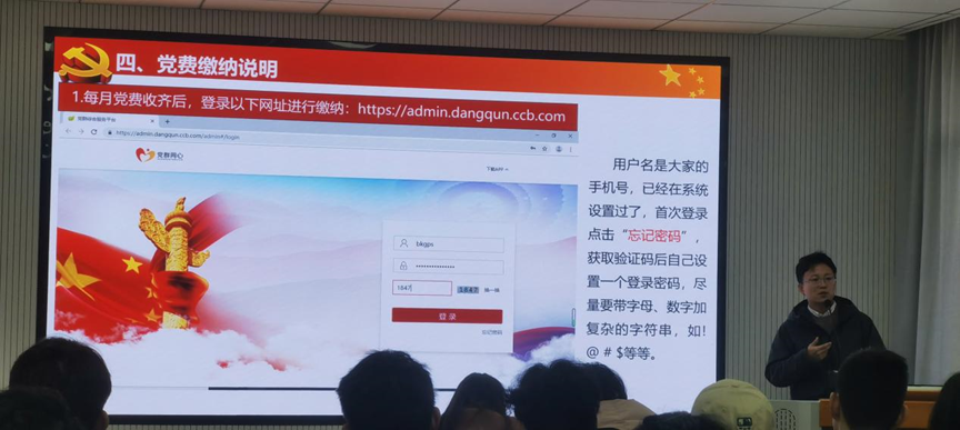 会议第二项,开展支部工作规范培训。杨凯从党支部工作实施办法、校内党建系统使用说明、宣传工作注意事项、党支部党费系统使用说明四个方面系统全面的梳理了支部工作规范。帮助新换届支委们快速掌握支部工作的要求和规范,为今后更好地开展工作提供了指导和帮助。