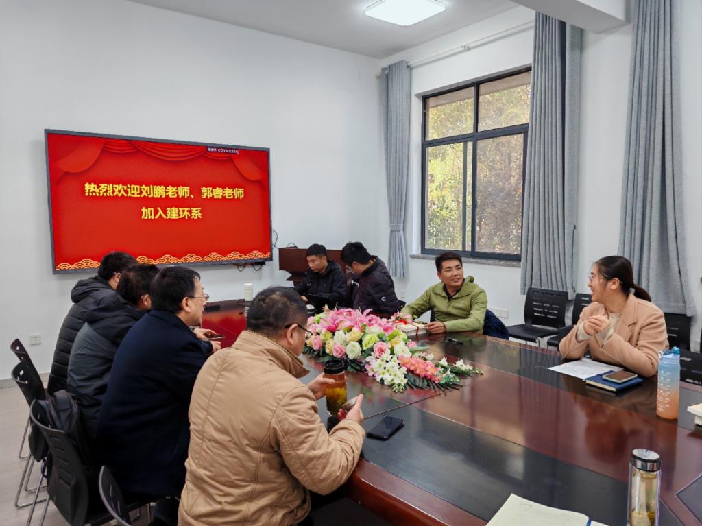 2024年11月28日下午,建环系教师党支部在欣苑226会议室举办新进教师入职交流会,欢迎刘鹏、郭睿两位老师入职,公司党委书记刘利剑、建环系全体教师参加该会议。