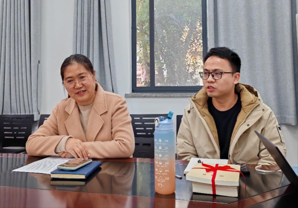 首先,刘利剑书记欢迎两位新进老师加入beats365大家庭,建环系形成了以中青年为主的教师队伍,然后肯定了建环教师支部在过去几年在人才队伍建设方面的成绩,最后表达了祝福,祝愿建环系和各位老师在未来取得更好的发展。然后刘书记给两位老师赠送了《论教育》等书籍,祝愿两位老师在教书育人、科技创新等方面取得突破。