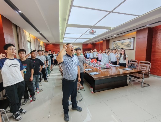 伍家岗工业园区党工委副书记何理同志主题学习会议,公司党委委员王宗平教授带领全体党员重温入党誓词,时刻铭记党员初心和使命,坚定信仰和信念。