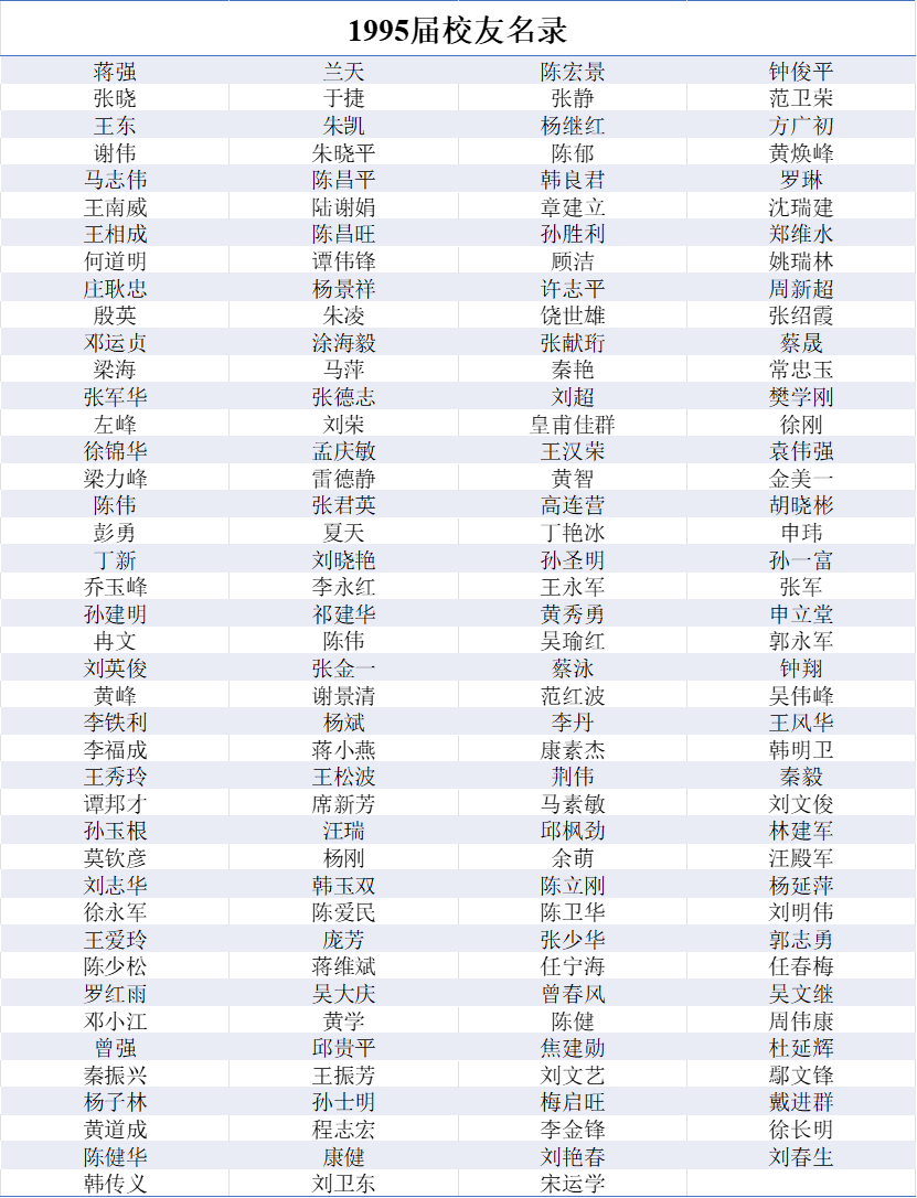 1995届本科生员工名录