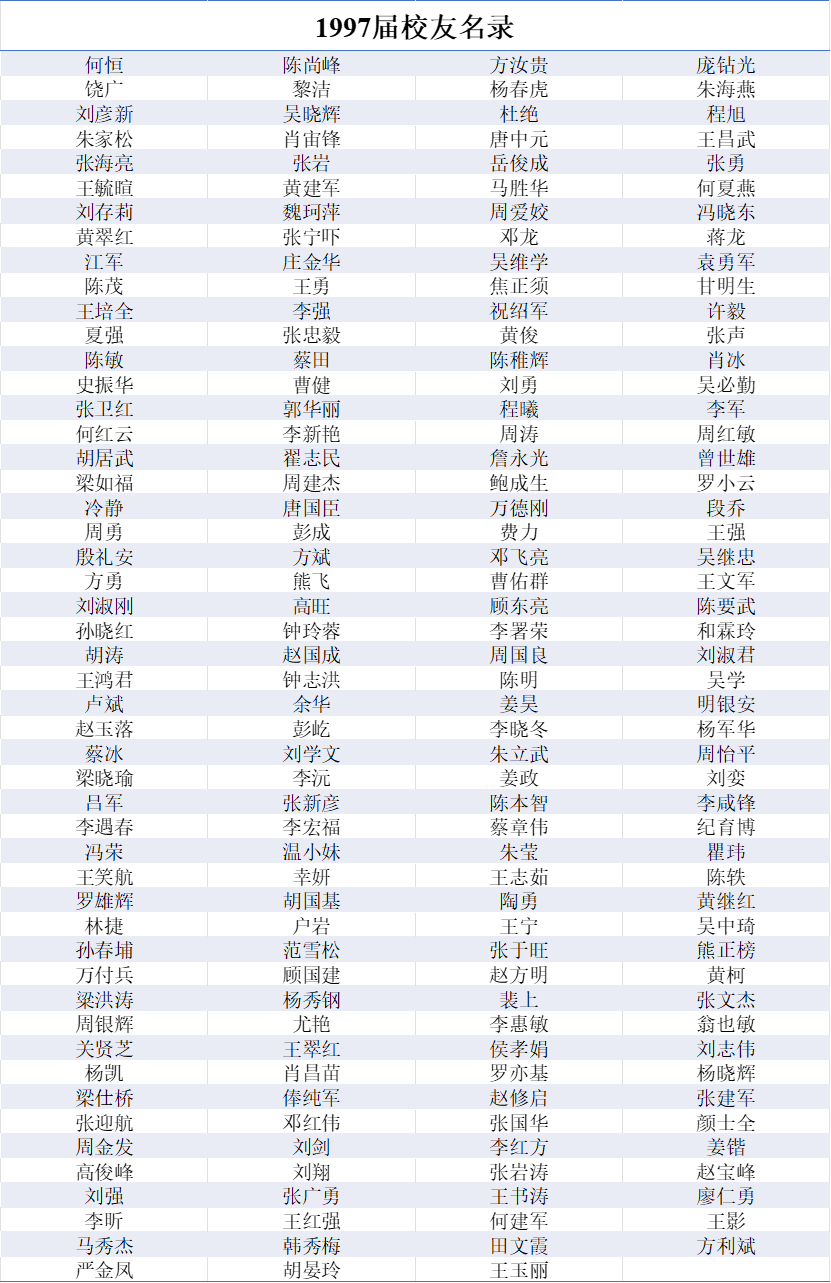 1997届本科生员工名录