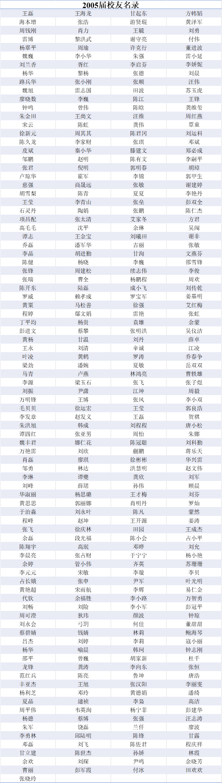 2005届本科生员工名录