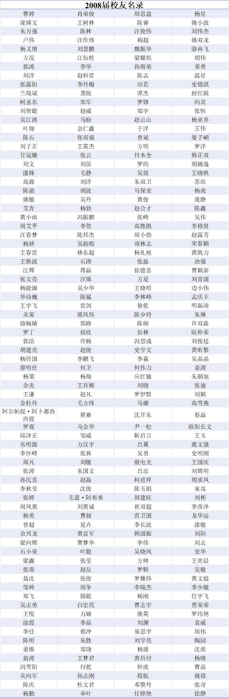 2008届本科生员工名录