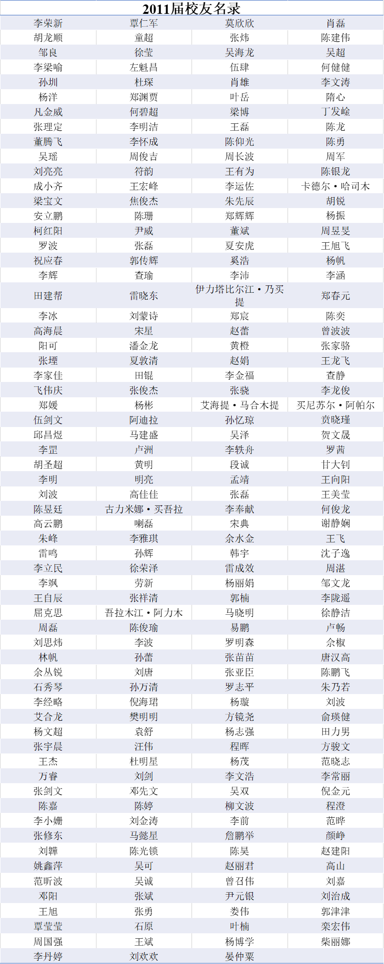 2011届本科生员工名录