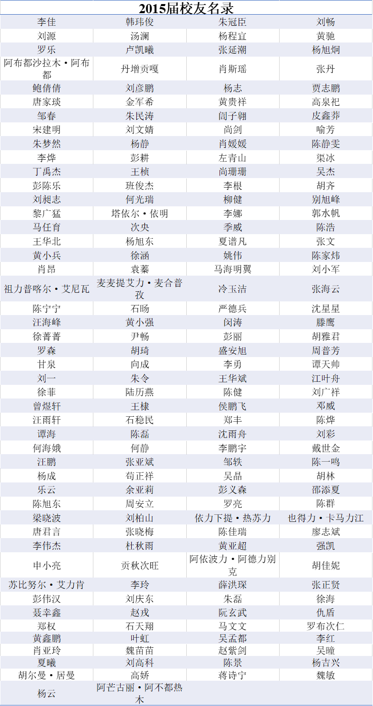 2015届本科生员工名录