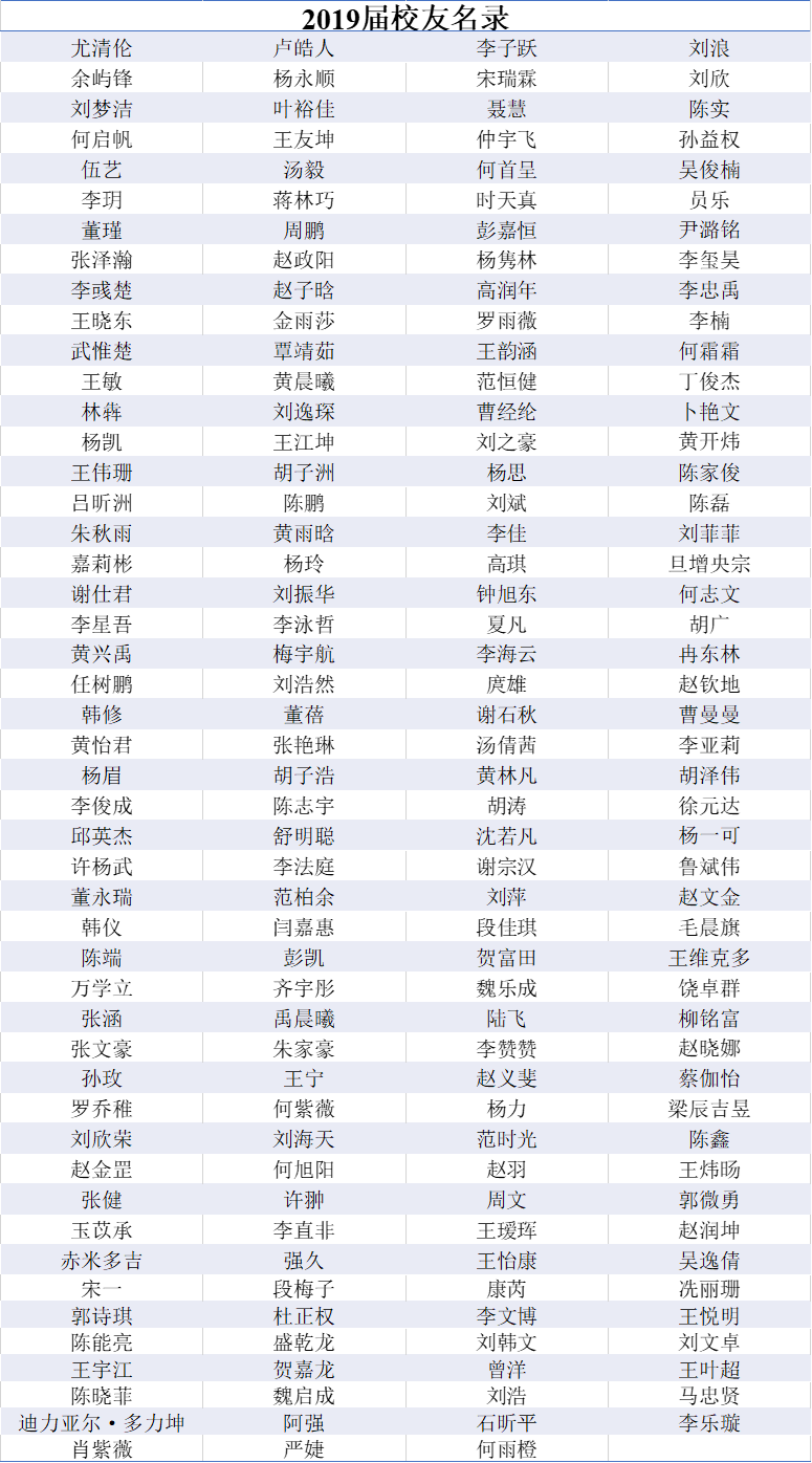 2019届本科生员工名录