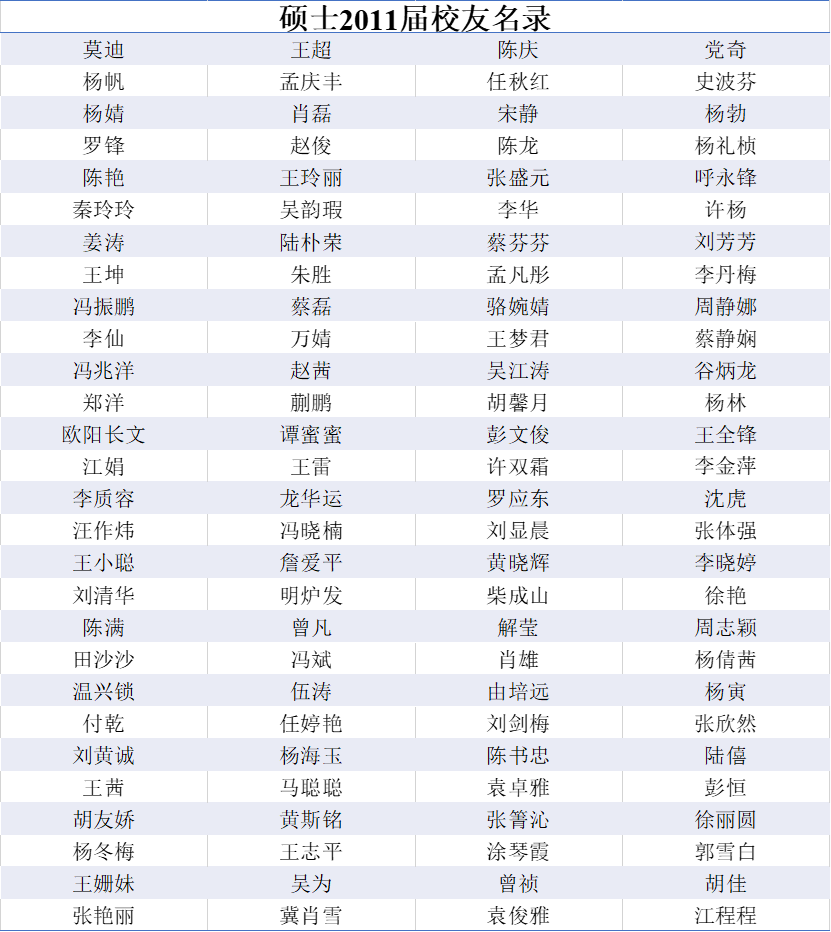 2011届研究生员工名录