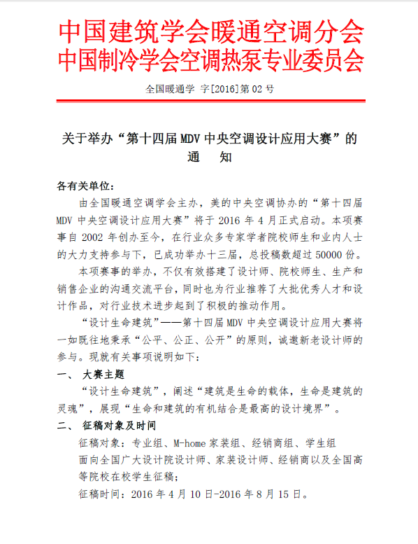 MDV中央空调设计应用大赛由中国建筑学会暖通空调分会、中国制冷学会空调热泵专业委员会主办,美的中央空调协办,创立于2002年,素有暖通行业“奥斯卡”之称。