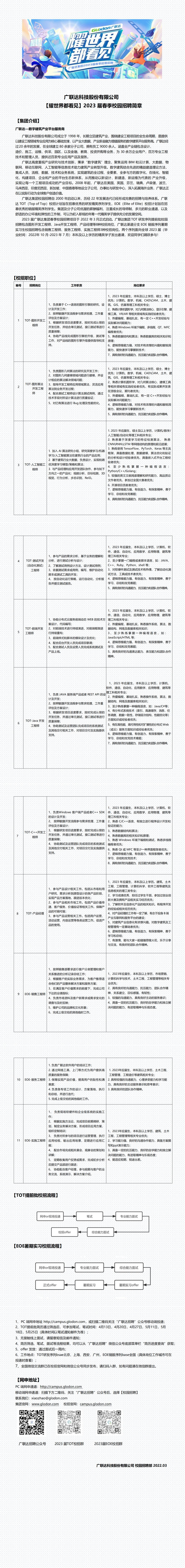 广联达科技股份有限公司2023届春季校园招聘